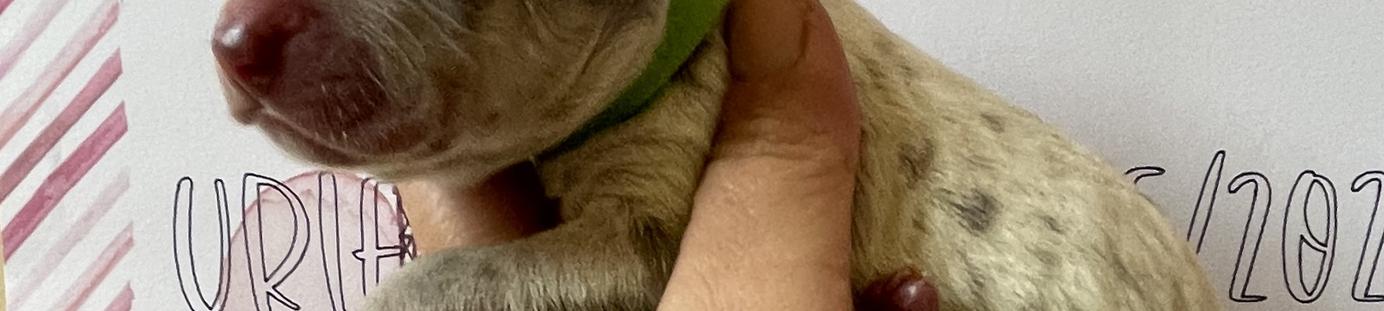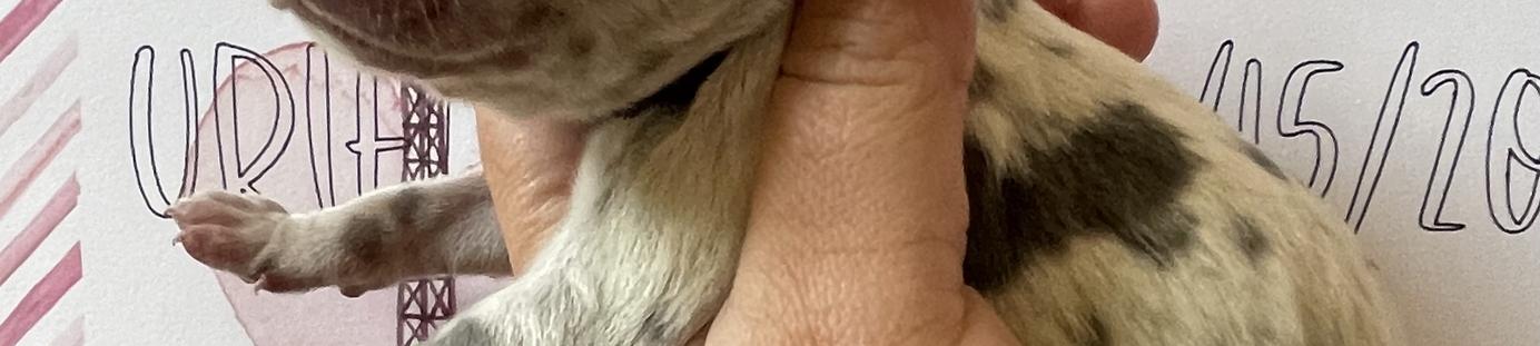 Ducky is a Blue Brindlequin female. She is a GOOFBALL… sweet as can be and bouncyyyyy… She is out of Atlas And a Spot of Blues Benelli Bean… 4th generation health tested!