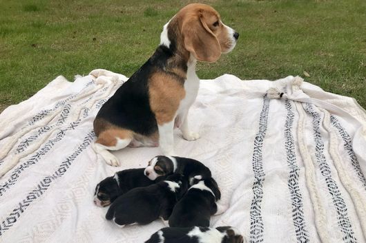 Shelby is a beautiful mom that takes excellent care of her babies. She is sweet natured and 100% Beaglelove. Shelby is AKC registered and her puppies will be also.