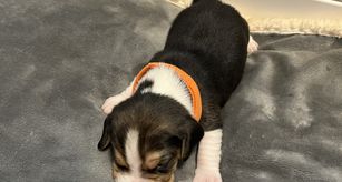 Our puppies include brown and white, lemon and white, and black white and tan. Colors will vary depending on the parent dogs.