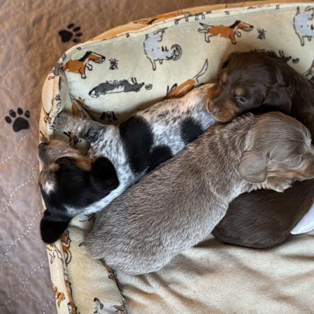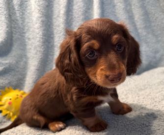 I had the best experience with Mindy! She responded promptly to my online application and answered all my questions and concerns regarding her available dachshund. I had a "meet and greet" with the dachshund and Mindy two days after completing the online application and left that day with my adorable Reese. At 2 months old Reese is already potty trained which I'm sure is due to Mindy's expertise. If I was to get a second dachshund, I would absolutely contact Mindy again!