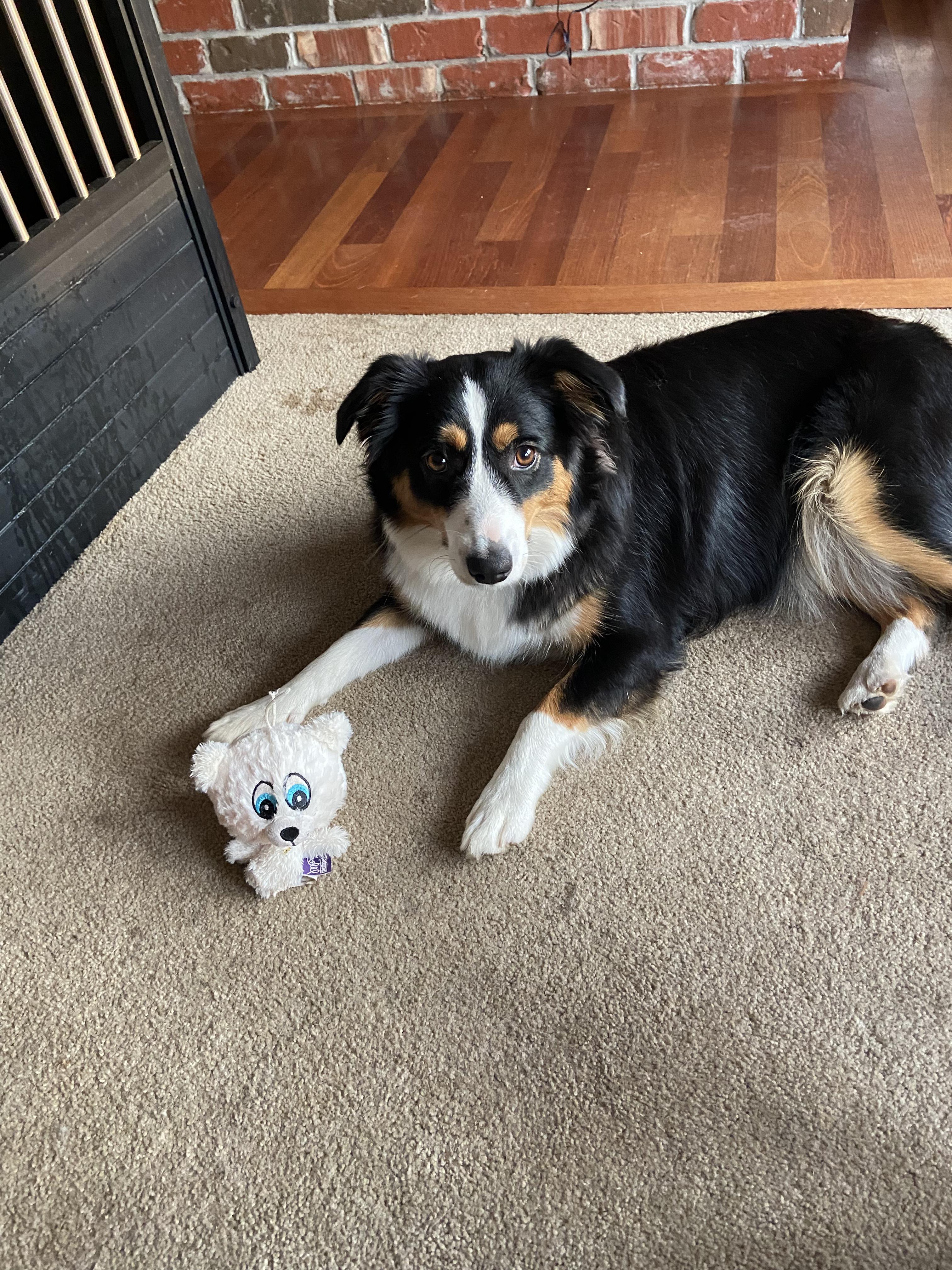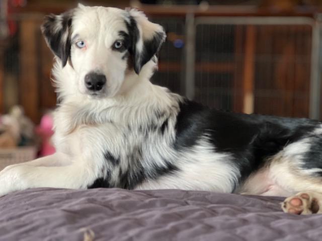 S is a male Miniature Australian Shepherd. Carefully selected as a great representative of his breed, Nancy decided to make him part of their program. Nancy has passed Good Dog’s screening process, which involved a review of their breeding practices, environment, and the mental and physical health of their dogs.