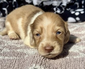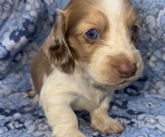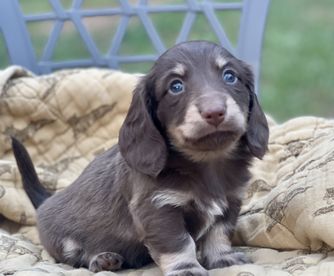 Our Dachshund puppies include cream, red, wild boar, black, chocolate, fawn (isabella), wheaten, fawn (isabella) and tan, fawn (isabella) and cream, chocolate and tan, chocolate and cream, blue and cream, blue and tan, black and tan, and black and cream. Colors will vary depending on the parent dogs.