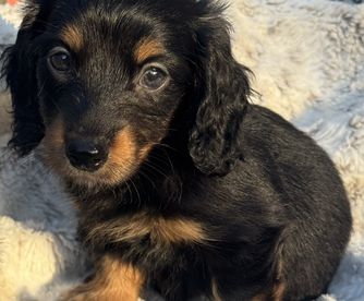 Our Dachshund puppies include longhaired, wirehaired, and smooth coat varieties. Coat types may vary depending on the parent dogs.