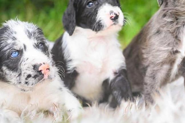 Our Poodle puppies include blue, cream, parti, and phantom. Great Dane puppies include harlequin, mantle, and black. Colors will vary depending on the parent dogs.