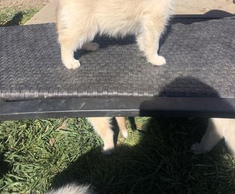 Pups are getting bigger. They’re finding their voice and their purpose. They love to tell me a visitor is her then welcome them with loads of happy kisses and get loved on. We’re working on leash training and potty training too. They’re so sweet! Looking for their forever family. These are nice quality pups ready for a show career to begin or a full time career as your new BFF!