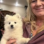 Phoebe is a female American Eskimo Dog. Carefully selected as a great representative of her breed, Kristine decided to make her part of their program. Kristine has passed Good Dog’s screening process, which involved a review of their breeding practices, environment, and the mental and physical health of their dogs.