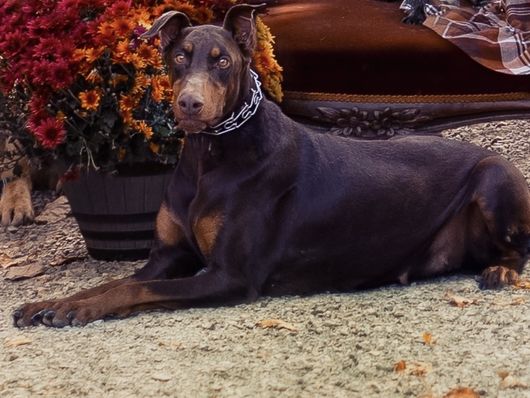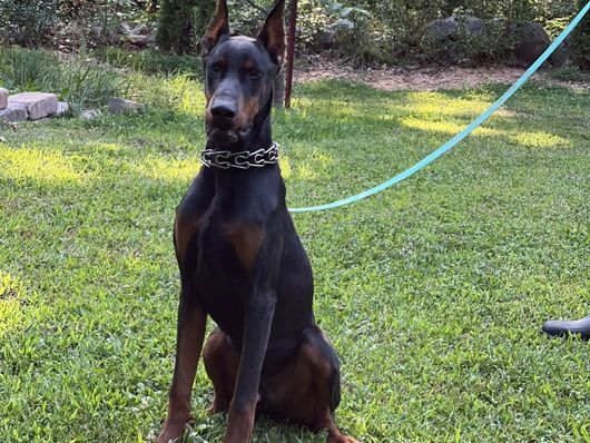 Sparta is a big, gentle natured Dobie who loves kids and other dogs and cats.
