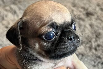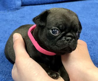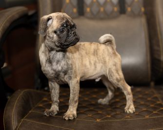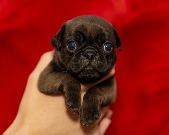 Brandy is a female Pug. Carefully selected as a great representative of her breed, Maria decided to make her part of their program. Maria has passed Good Dog’s screening process, which involved a review of their breeding practices, environment, and the mental and physical health of their dogs.