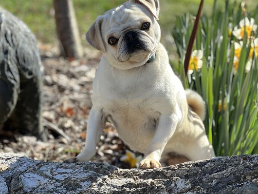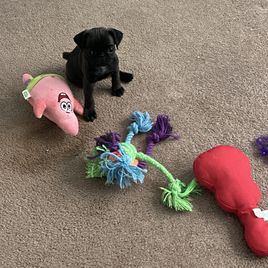 Jax is a male Pug. Carefully selected as a great representative of his breed, Maria decided to make him part of their program. Maria has passed Good Dog’s screening process, which involved a review of their breeding practices, environment, and the mental and physical health of their dogs.
