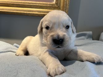 “Price includes a microchip, 30 days free insurance, up to a ten-year genetic warranty, limited registration, puppy gift package, and a lifetime of breeder support. Labs are $2000, Goldens are $2500-$3000. A $300 deposit is required to be placed on the list and goes toward the purchase price.”