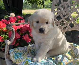 Our Golden Retriever puppies include golden and light golden. Labrador Retriever puppies include black, chocolate, and yellow. Colors will vary depending on the parent dogs.