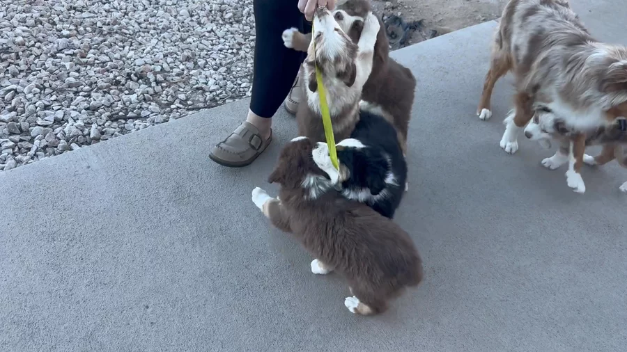 Happy new year! The babies are so big! They learned a little about the leash in a group today. They have little collars on now and have been brushed and introduced to the high velocity dryer. They met some older kids today too!