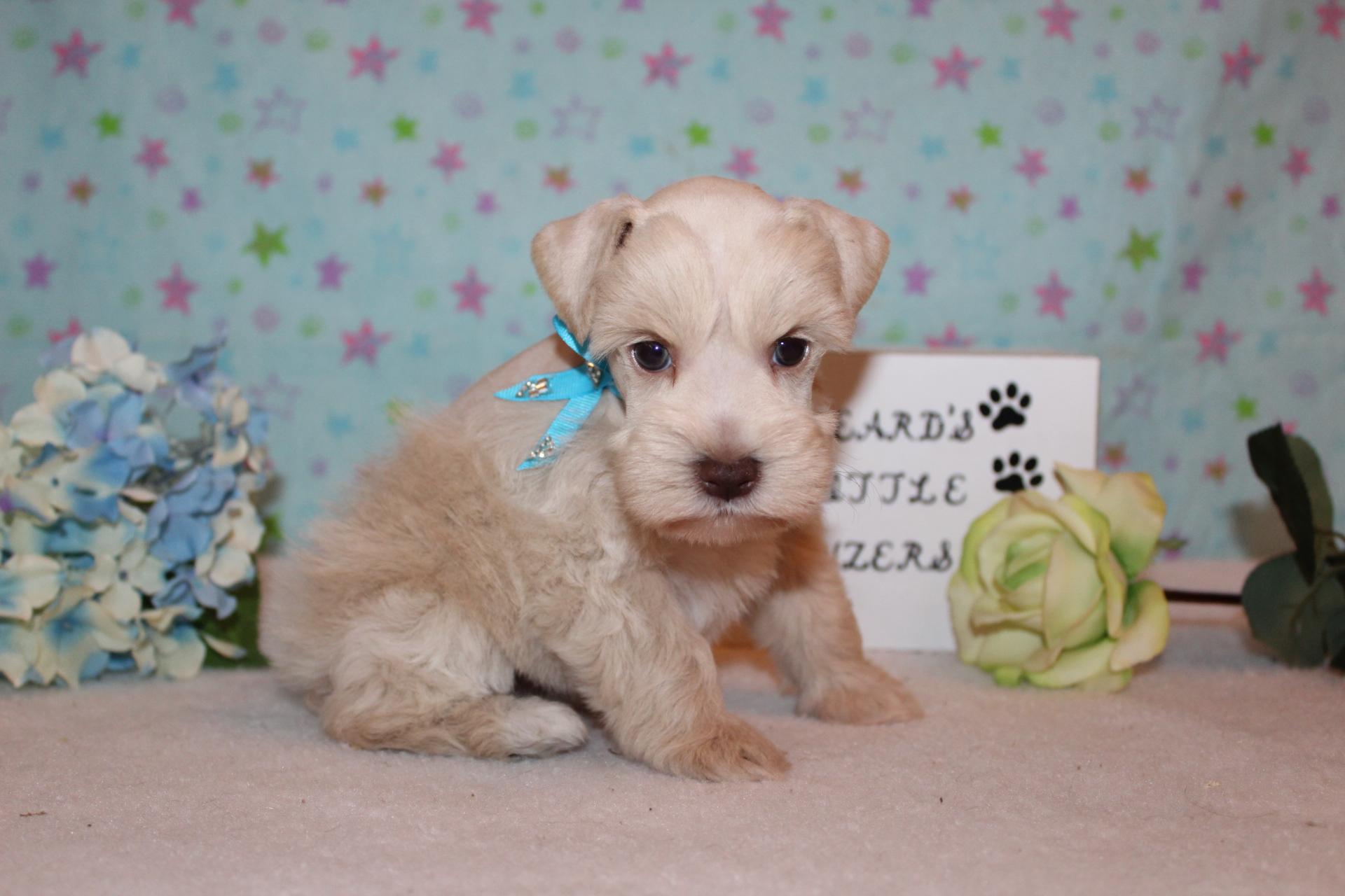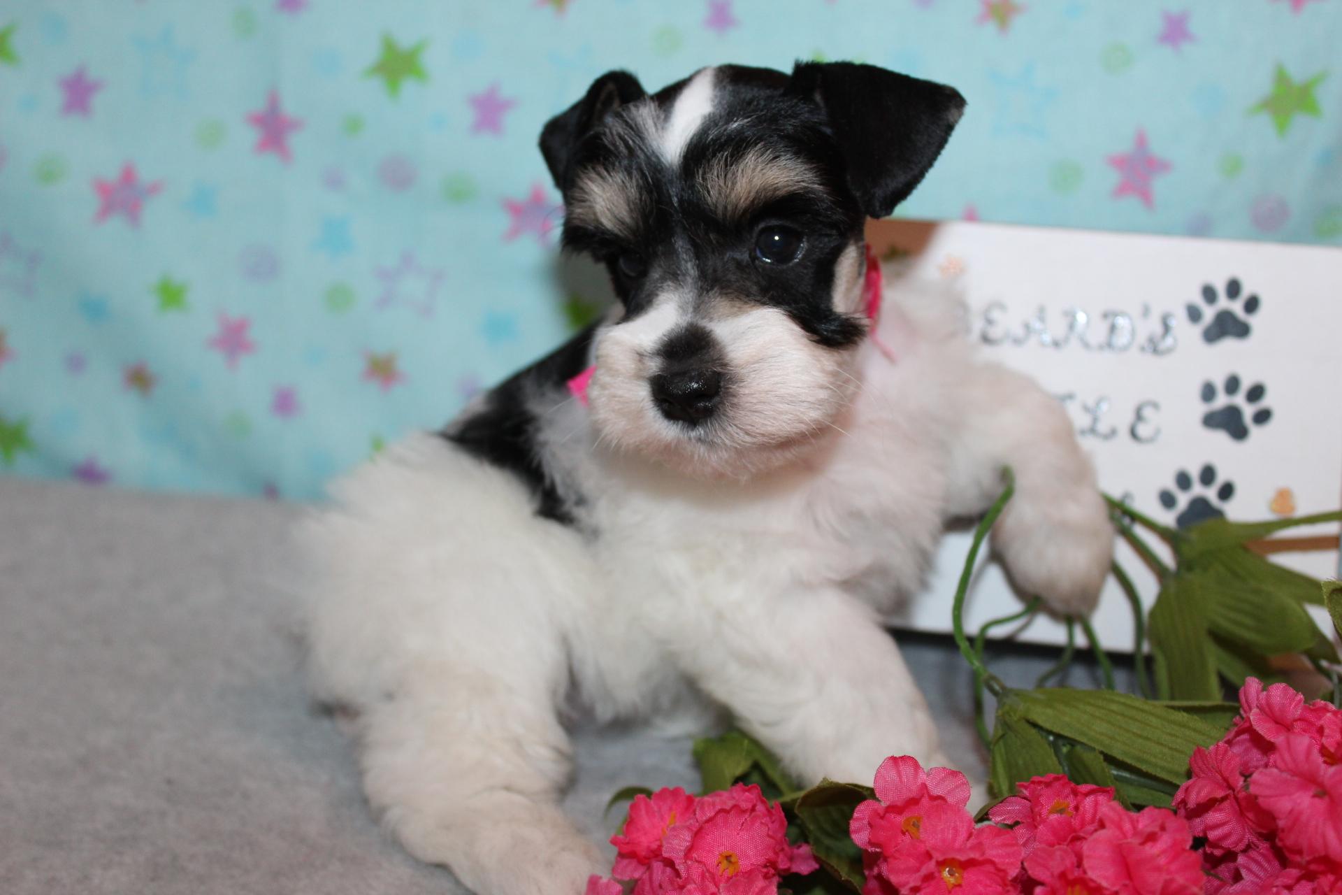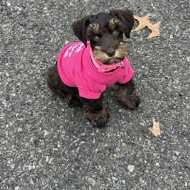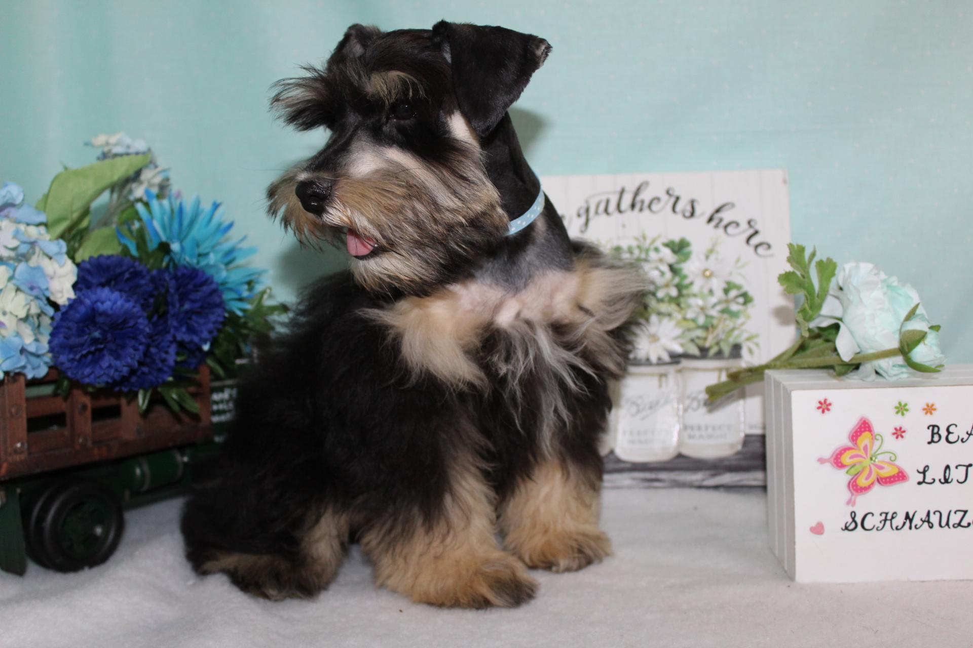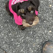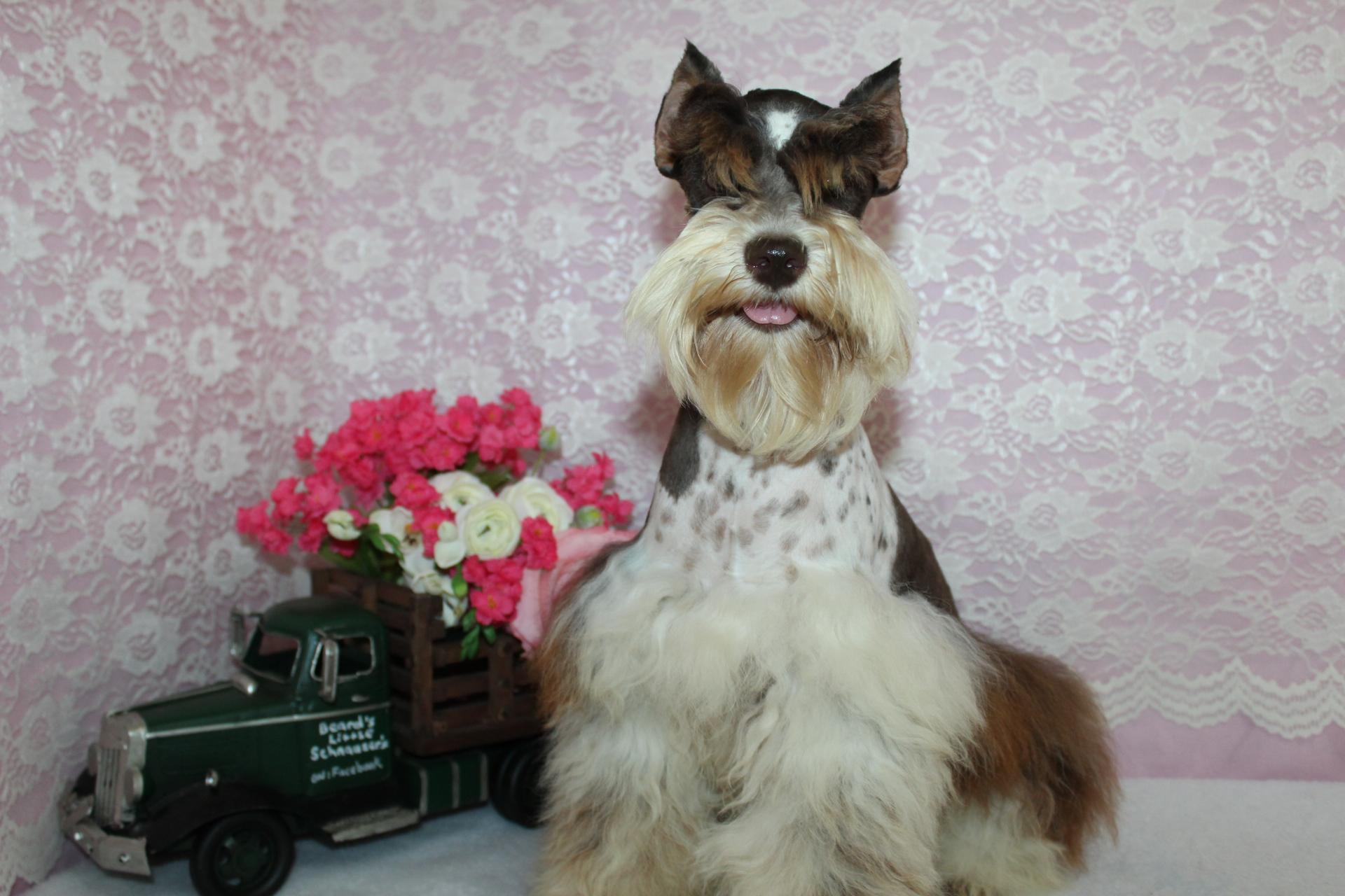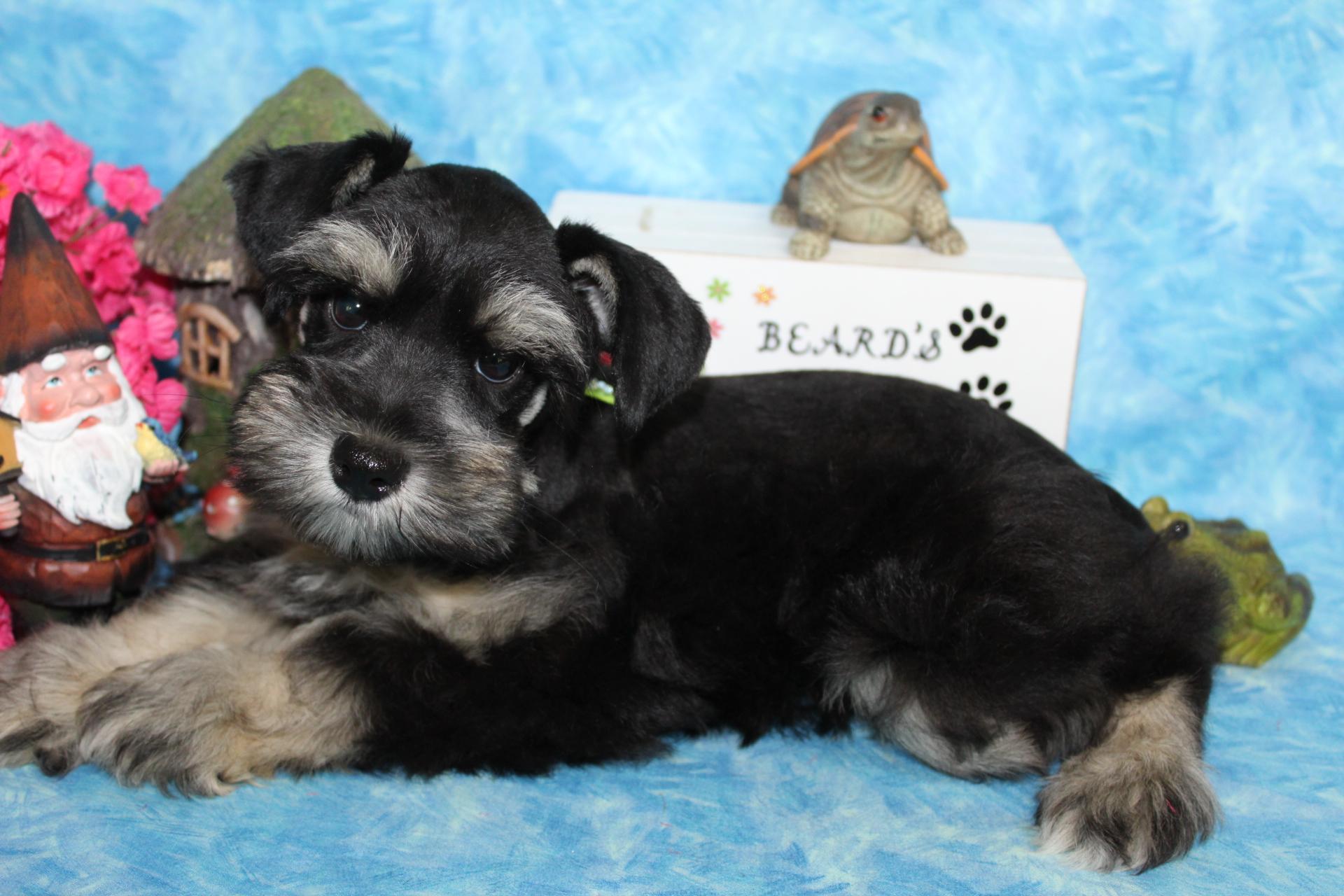 Beards little schnauzers is a 5 star rating in my book!! I was looking for a road companion for the truck and I was debating on getting another schnauzer. I currently own a 2 year old Schnauzer by the name of Migo, and was nervous on having another one. Well after talking to Teresa my mind was made. The knowledge she has pertaining to these dogs are indescribable. She was giving me advise on how to continue to take care of 2 yr old schnauzer, while feeding me knowledge on the current one i purchased from her. Great personality and was like purchasing a puppy from a family member! I’m happy to have purchased my little Cècret!!!!