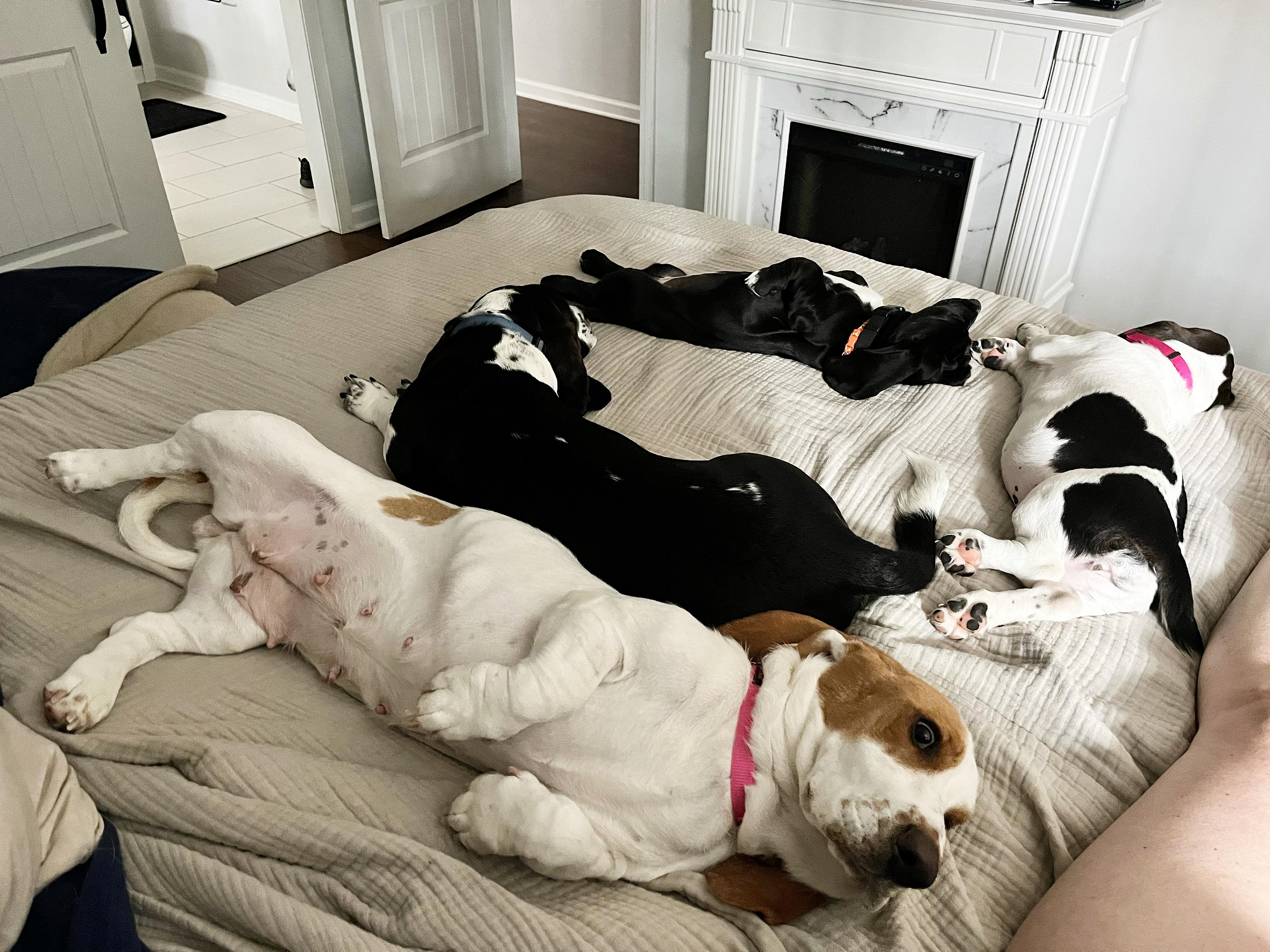 My husband grew up with Basset hounds and when we got married he begged to get another one. I fell in love with the breed after getting our first boy. We discussed breeding in the future and chose to leave that option open. 2 years later we introduced a female to our family. Both of them were blessed by the vet as healthy for breeding, so here we are!!!