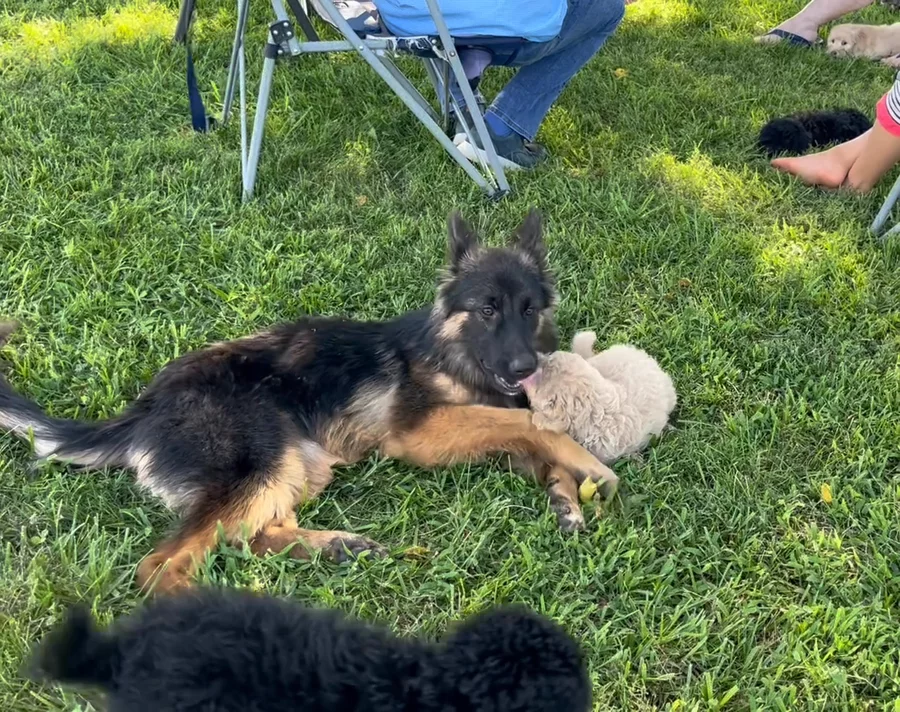 Early neurological stimulation is one tool we use to shape our puppies into child friendly, easy to groom, and well adjusted dogs. We provide safe socialization experience and challenging opportunities to build their trust and confidence. We provide basic obedience training to teach them patience and discipline. We work on potty and kennel training to ease their transition into your home.