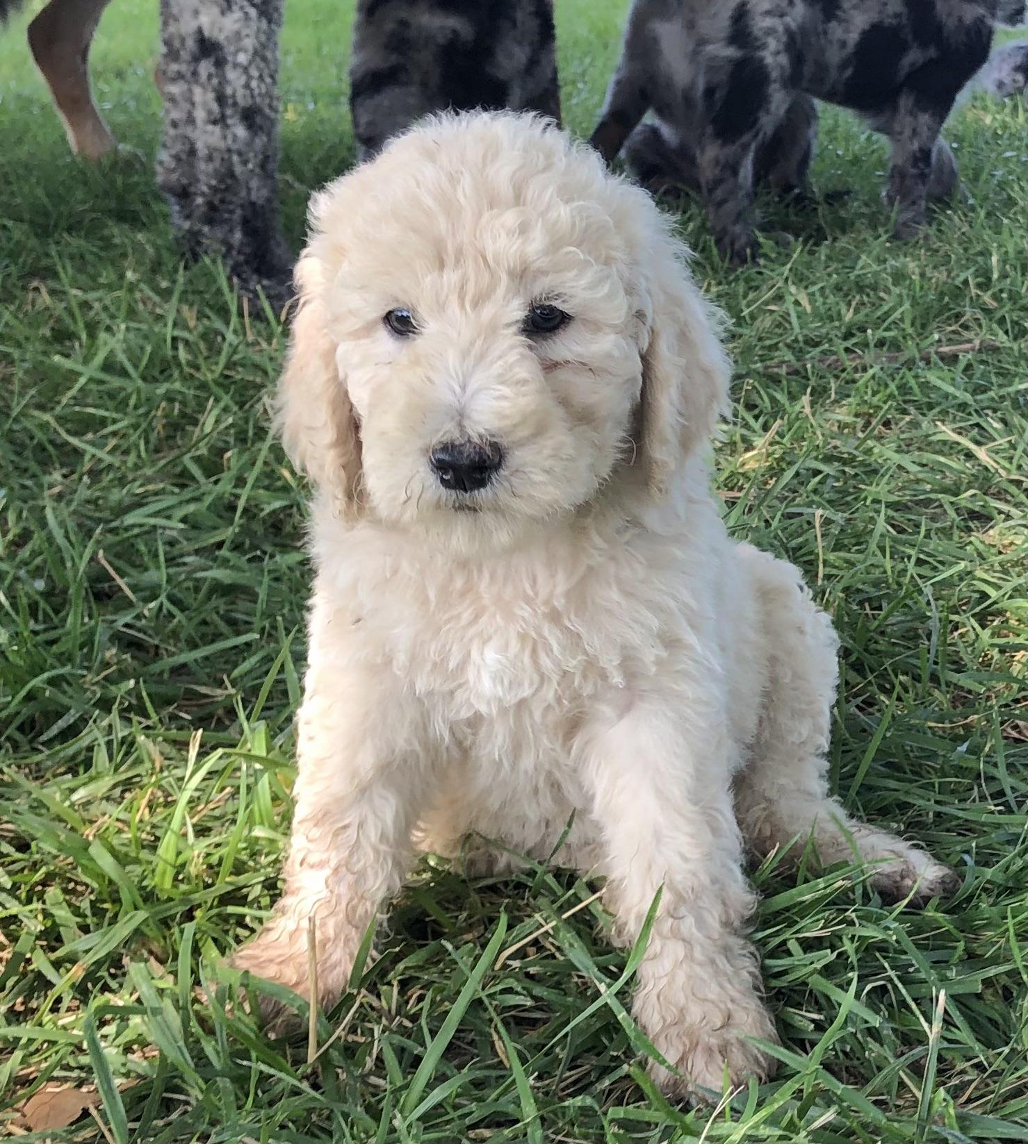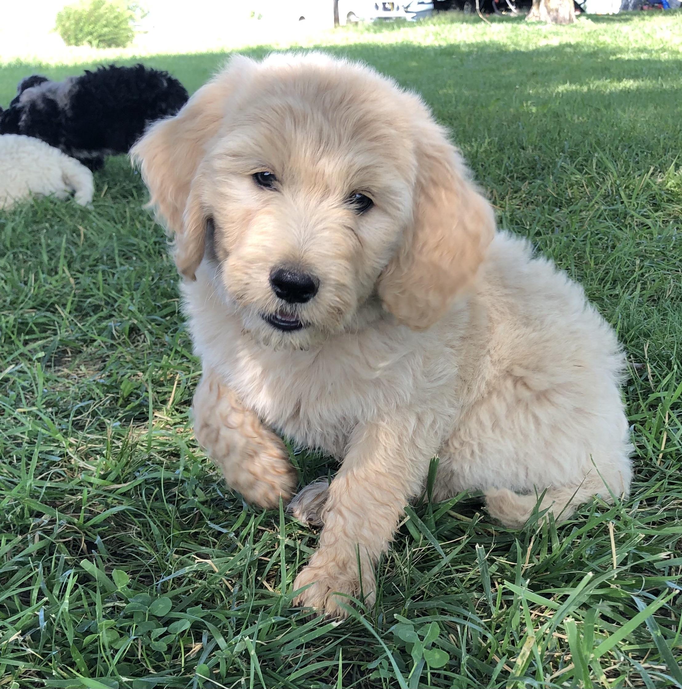 Goldendoodle puppies include cream, apricot, black, and merle. Colors will vary depending on the parent dogs.