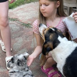 I'm Annette B., the breeder behind Beasley Acres Aussies located in Laconia, IN. At Beasley Acres Aussies our goal is to provide the best puppies possible. We perform Embark DNA Health Testing on all of our breeding adult dogs, and all are clear of genetic defects.