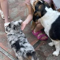 We fell in love with our first 2 Toy Aussies (Ellie & Ashin) in 2020. Two years later when Ellie had her 1st litter, she had 2 female puppies (Bean & Rummy). We kept them both and started our breeding program to share these amazing dogs with others. Our pack has now grown to 9, and we are looking forward to years of Aussie Adventures!