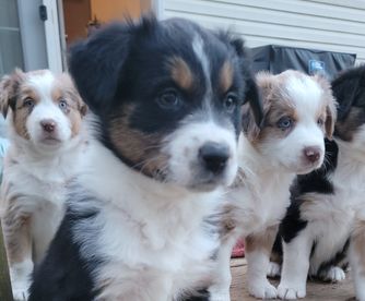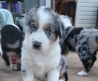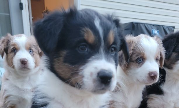 Our puppies include black, red merle, and blue merle. Colors will vary depending on the parent dogs.