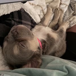 working with kari was so smooth and simple. she answered any and every question i’ve had and is extremely knowledgeable of the breed! my millie girl is such an angel. she is exactly how kari described her! i will definitely work with kari again!