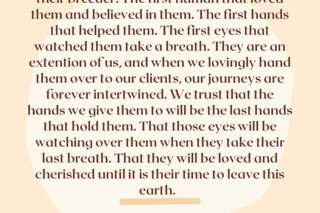 Cynthia may provide a written contract or health guarantee when you purchase a puppy. This helps protect both you and your breeder, ensuring that you both have a clear understanding of the terms of your puppy purchase. If Cynthia offers a contract or guarantee, the details will be personalized by them. If you have any questions or want to know more, don’t hesitate to reach out to Cynthia directly.