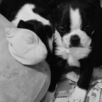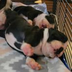 Our puppies include black brindle and white, brindle and white, and black and white. Colors will vary depending on the parent dogs.