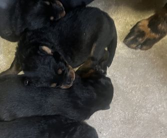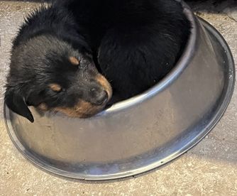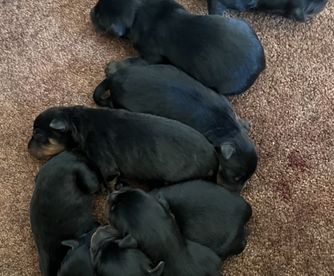 Our puppies are black and rust. Colors will vary depending on the parent dogs.
