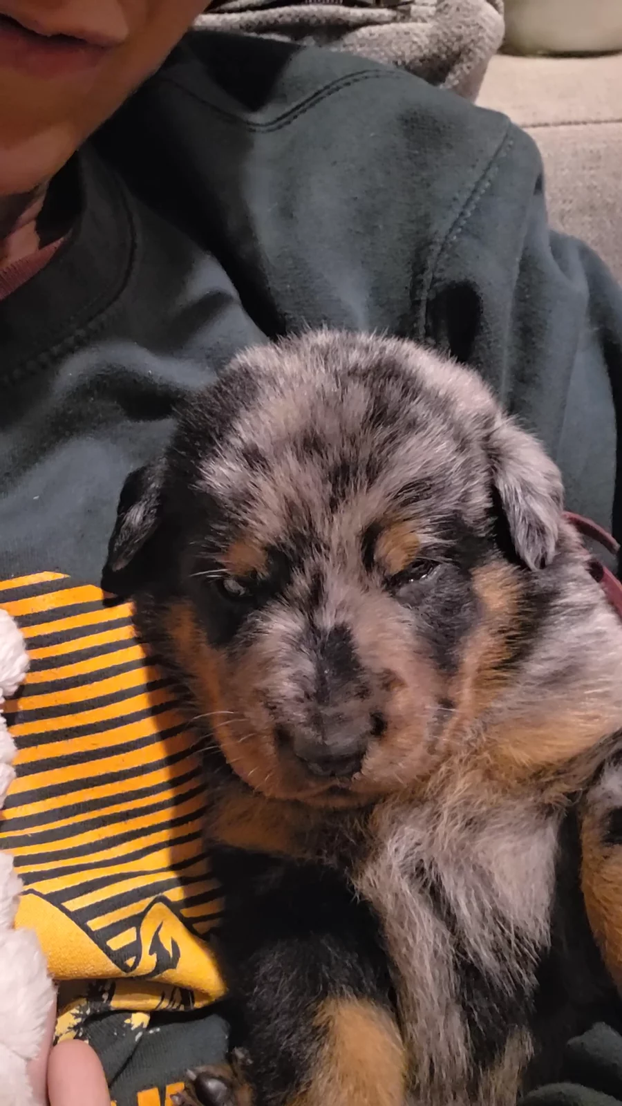Time absolutely flies when you’re having fun. Raising babies is a ton of work, but always fun. Now that everyone has been introduced to their new families in messages, I’m excited to share our Ends of the World. Starting with my keeper, Splice 🩷 For once, I’m keeping a sweet one lol. (I’m just as surprised as you.) She’s showing the most balanced structure of the girls, a happy and thoughtful temperament that’s a nice blend of her parents, and lovely engagement on sheep during her intro that reminds me of working her half brother Okkoto, and I hope to see her confidence bloom the same way his did given her level of interest. Sheep and shows will be her future, time will tell what else we get up to. Glitch 🩶 Ohhh my bold and bright baby. Who came into this world making me fight for him, screaming with personality since the day he was born, and who lives with a joy that is hard not to love. He is going to be spending the next few months learning foundations in Georgia and then getting some dog show and conformation experience and training with a friend of the program. His final stop will be back with his papa Ocho! We are so excited to share this boy’s future. He will be diving into sports and dog shows, and was our pick puppy for the litter in general both in structure and temperament. Crawler 💜 He is staying close with a dear friend who has wanted a Séance baby for a long time, even after she met the little shit along with my other dogs. He has all the same forwardness of his parents, but got so much sweetness and a true joy for life from Ocho. His future is full of a ton of sports and showing off his stuff in the show ring. Hoarfrost 🩵 Always eager, always happy, always ready to engage with a playful kind of malice and mischief. He’s one of those beauceron boys who love you with their whole heart, and want to give you everything he can while trying anything you ask, as long as they can spend the time with you. He’s headed down to NC to be a well rounded show and sport boy just like his brothers. I’m so excited for he and his mom’s future. He has very big shoes to footsteps to follow in, and I think he’s up for the challenge. Solar 🧡 the sour patch kid. This doll baby is headed down to Texas with hopes of being a well rounded demo dog and dabble dog. She is just happy, all the time. Loves to cuddle, loves to go on adventures, loves to be involved in all the things. The puppy who would NOT let go of the herding ball when first introduced to the new giant thing, and the first to volunteer for puppy cuddles with calm sitting and eye contact as we wind down for the evening. I cannot wait for her to fill her mom’s heart with so much joy. Plague 💚 Headed down to South Carolina to learn to be the perfect family companion. He’s my fluffy bear of a puppy, bold, stoic, and sweet. Always up for adventure… but equally up for a good cuddle after. He should enjoy his new routine, learning the ropes of the house and bonding with his new mom and dad as they settle into life with a bumbling baby dog. And then there were two. These babies are still available for the right home and right people. For now, they have safe places to be and hang out for a bit, learning the ropes of being a puppy. Magma ❤️ I love this girl, I’ll be honest I hoped it would be her since they were just two weeks old. Her personality is exactly like her mother, but sweeter, and I adore the way she demands my focus and sucks up training like a greedy sponge. She has lovely presence and instinct on sheep, and had a nice dose of interest for ducks without being rude, and I would like to see her in a home where she can continue to herd. There is every possibility she will end up back in my home after she does some puppy floating and trading. But if the perfect home is out there, I won’t deny it. At the end of the day her structure isn’t as much of an improvement on her parents as her sister’s, and I have to be mindful of the dogs I add to my home. Otherwise, she wouldn’t be going anywhere much in the same way her half sister Vega wouldn’t have. She will likely be a well rounded do it all dog as an adult, but will have big opinions and be a very thoughtful dog like her mother. Impact 💛 oh my goodness, Impact. Impact is still looking for a home because this boy will NEED to do things. His toy and food drive is through the roof, the only puppy who has wounded me over a treat lol, and he loves to use his nose and followed some baby dog tracks when I was testing everyone. He is a doll, truly only full of joy and love, but he is a busy body with a mind that loves to learn, explore, and most of all - throw himself at anything that gets him a tug or food. He is FUN, but will not be suitable as anything less than a very active pet. He has some white and while not DQ size, he is not a puppy we want to represent our program in dog shows as a result. But he will do anything and go for any other goal you have for him with gusto and guts.