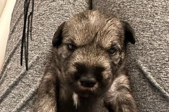 Sidney is the sweetest girl who loves to be with her people. She lives for fetch, walks, and snacks, but she’s always up to cuddle on the couch. Sidney learns tricks faster than any schnauzer we’ve had (rolling over is her favorite!) She takes everything in stride and doesn’t seem to be bothered by anything. Dog shows, playgrounds, patios for dinner, she’s ready for it all (and happily accepts pets everywhere!)