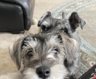 Our puppies include salt and pepper and black and silver. Colors will vary depending on the parent dogs.
