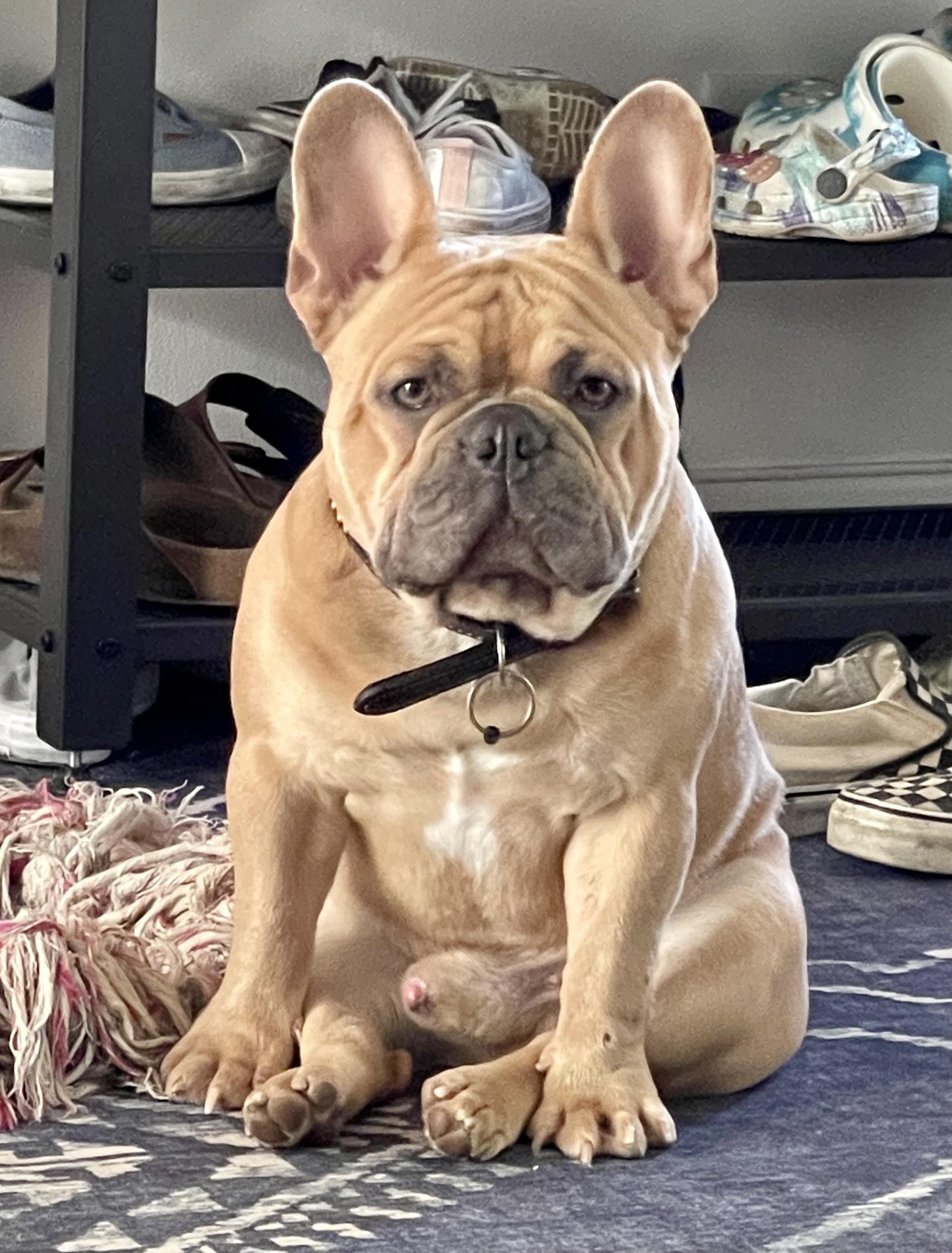 Temple is a female French Bulldog. Carefully selected as a great representative of her breed, Beau decided to make her part of their program. Beau has passed Good Dog’s screening process, which involved a review of their breeding practices, environment, and the mental and physical health of their dogs.