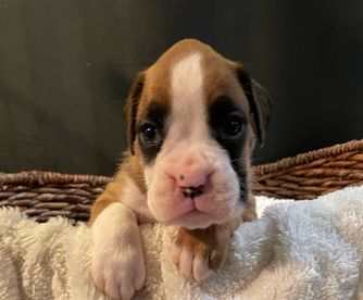 I was first introduced to Boxers by my husband. He had just gotten 1 when we first met & I soon fell in love with both him and his dog, Ruby. After a couple of years, we decided to breed her. Since then I have strived to learn as much as I can about the breed, ethical breeding practices and guidelines. I have become a member of my local AKC Boxer club to attend and eventually participate in shows.
