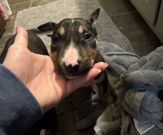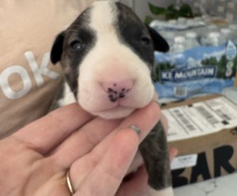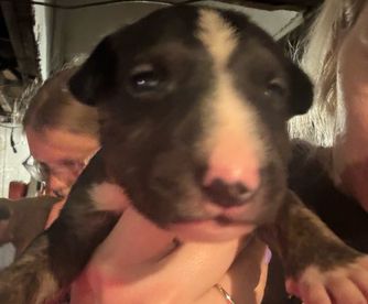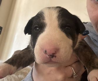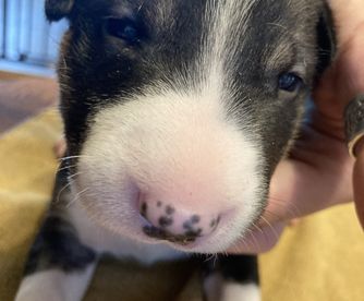 Bill is a male Bull Terrier. Carefully selected as a great representative of his breed, Brian & Shana decided to make him part of their program. Brian & Shana has passed Good Dog’s screening process, which involved a review of their breeding practices, environment, and the mental and physical health of their dogs.