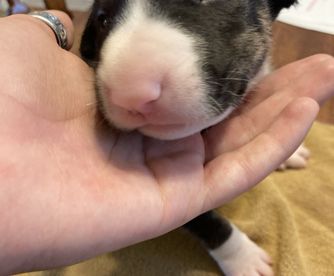 Gilda is a female Bull Terrier. Carefully selected as a great representative of her breed, Brian & Shana decided to make her part of their program. Brian & Shana has passed Good Dog’s screening process, which involved a review of their breeding practices, environment, and the mental and physical health of their dogs.