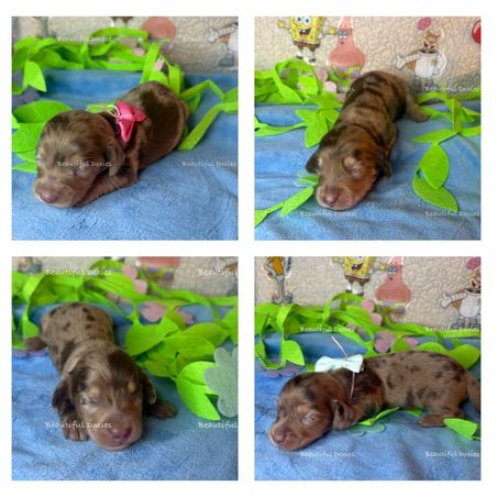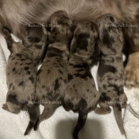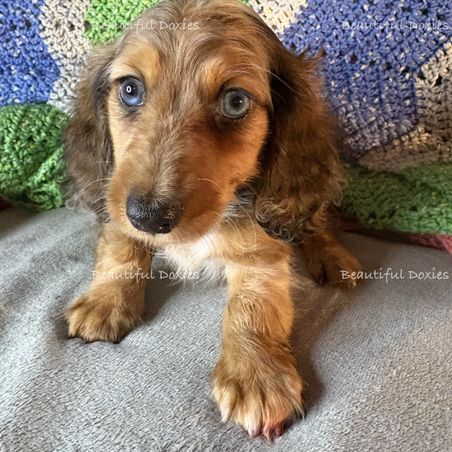 I'm Antoinette F., the breeder behind Beautiful Doxies located in Washington. We have been breeding for 15+ years and our Doxie Pups/Adults are raised as members of our family until they’re ready to join yours. Each of our pups has brought so much happiness to us and all of our Fur Families lives. We try our very most to produce Quality Dachshunds as close to the Akc standards as possible with wonderful personalities and conformation. Our Pups receive 1st vaccine, proper worming at 5wks, 6wks, 7wks, Veterinary Check-up before leaving our Home, 30 days health insurance(If getting Akc papers)a huge puppy basket with everything you'll need to get started, and plenty of pictures/video every wked and lifetime support! Parents are health tested. I have References if needed and Beautiful Doxies Extended page for Fur Families! Any Questions never hesitate to ask.