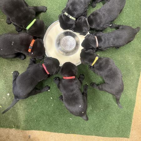 Our puppies include black, chocolate, and yellow. Colors will vary depending on the parent dogs.