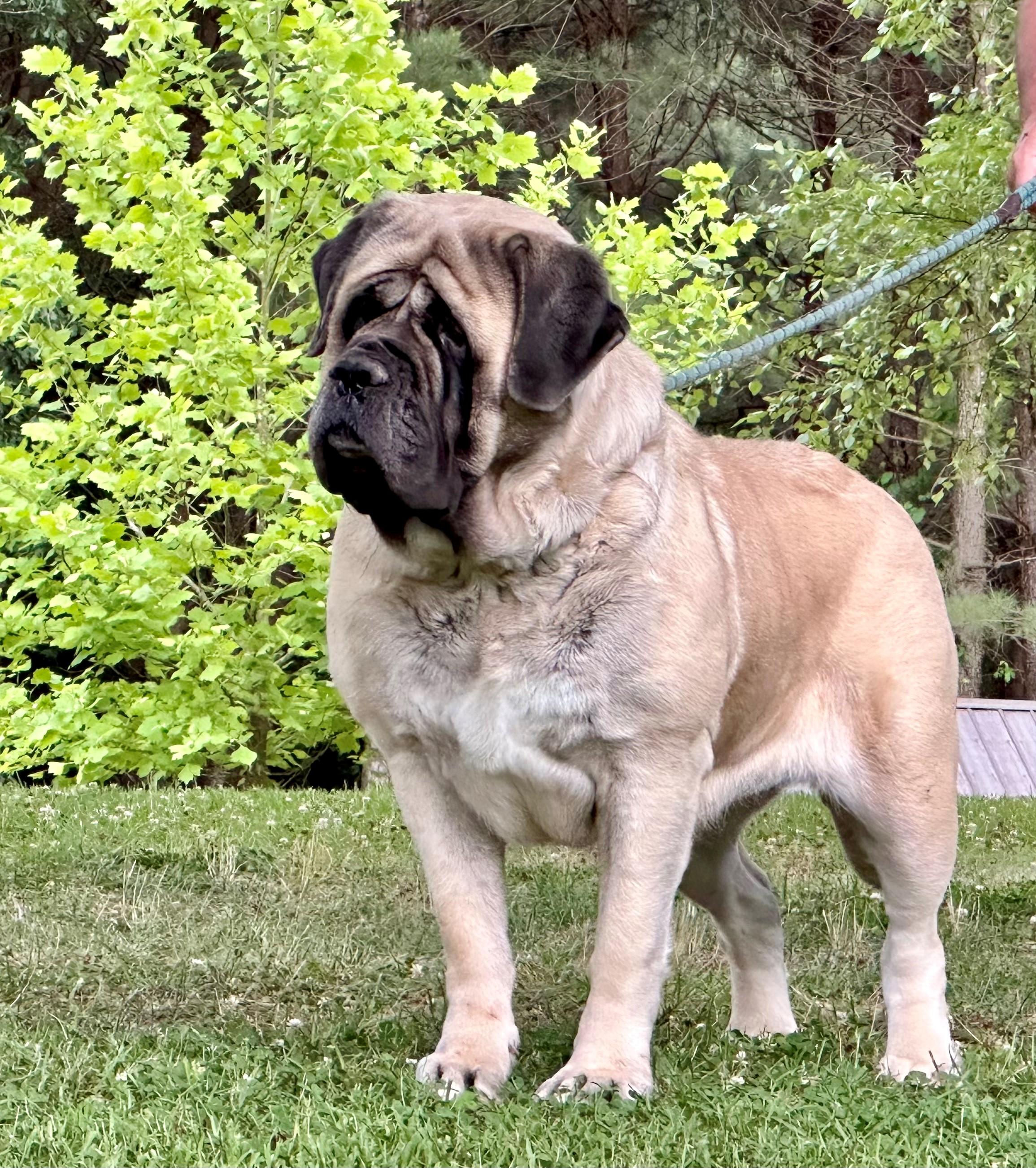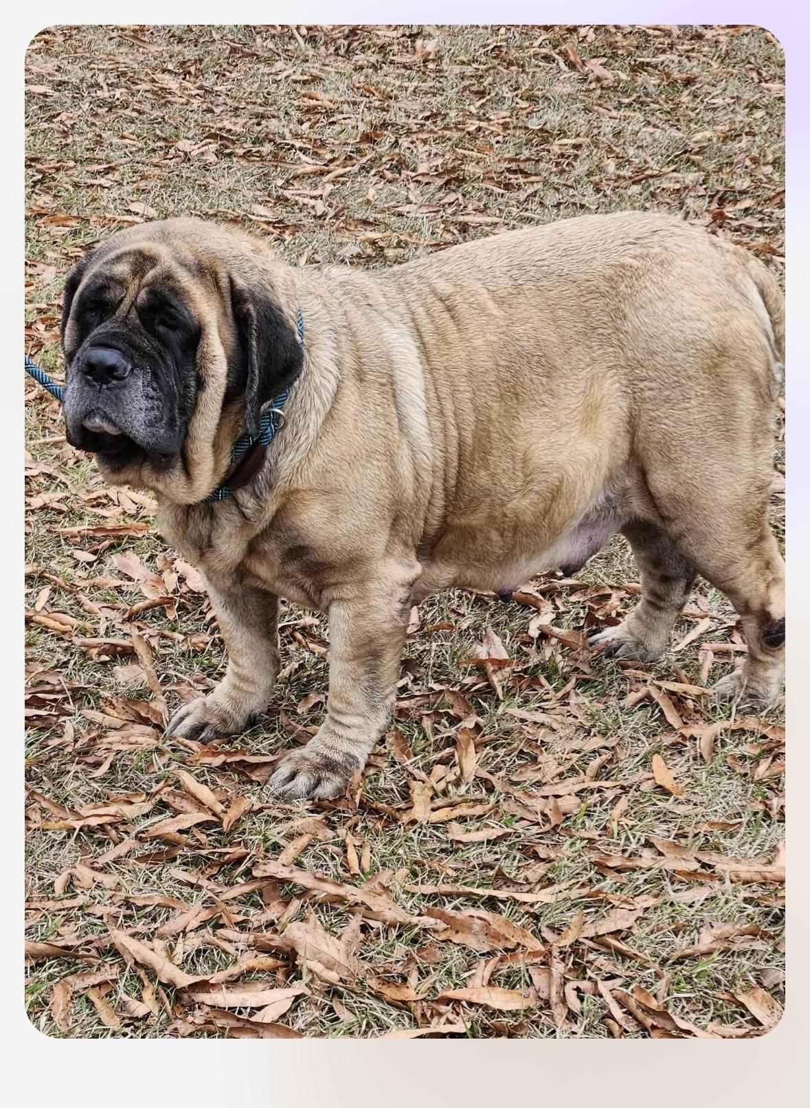 Grisha is a female Mastiff. Carefully selected as a great representative of her breed, Julie decided to make her part of their program. Julie has passed Good Dog’s screening process, which involved a review of their breeding practices, environment, and the mental and physical health of their dogs.