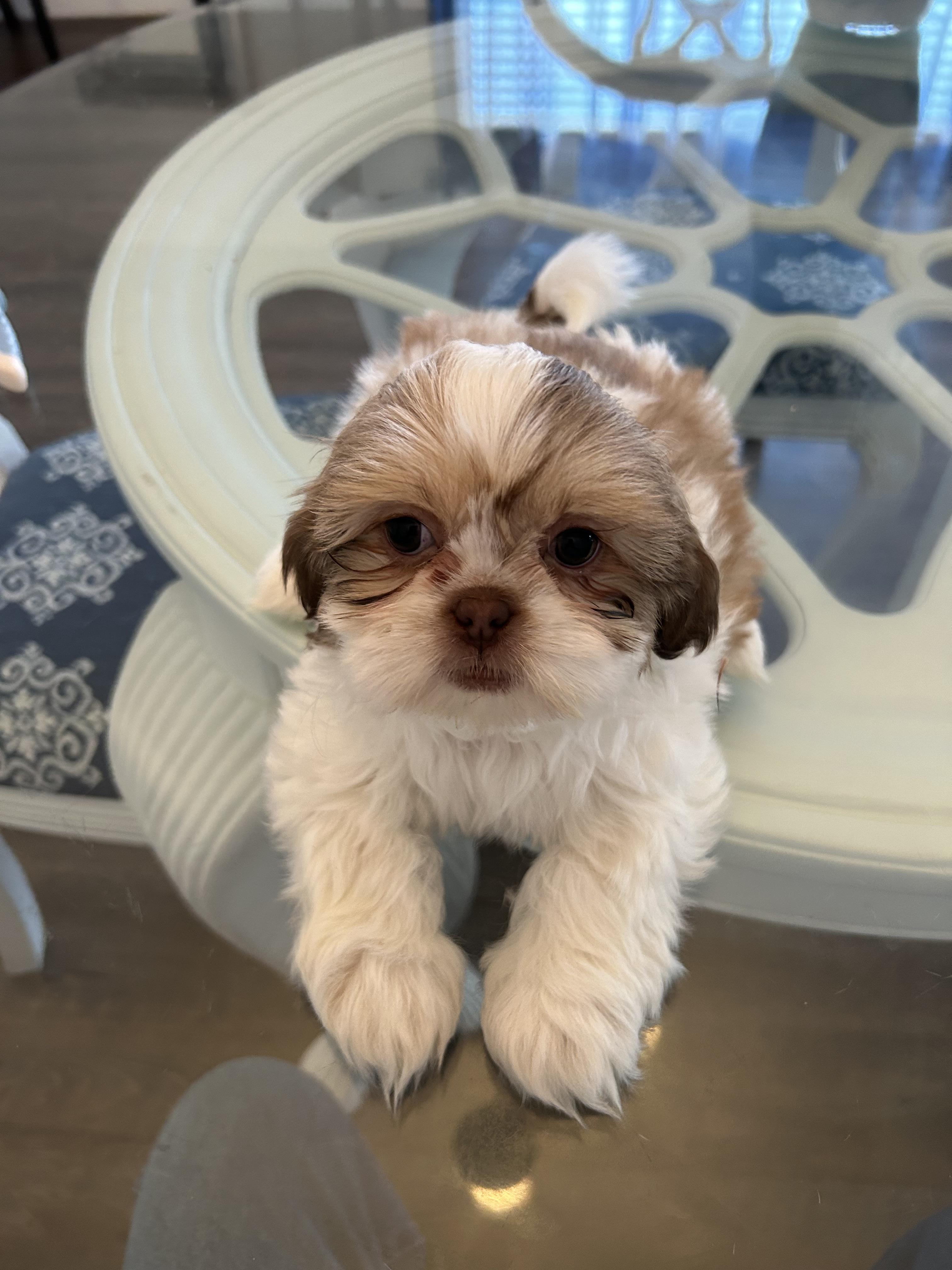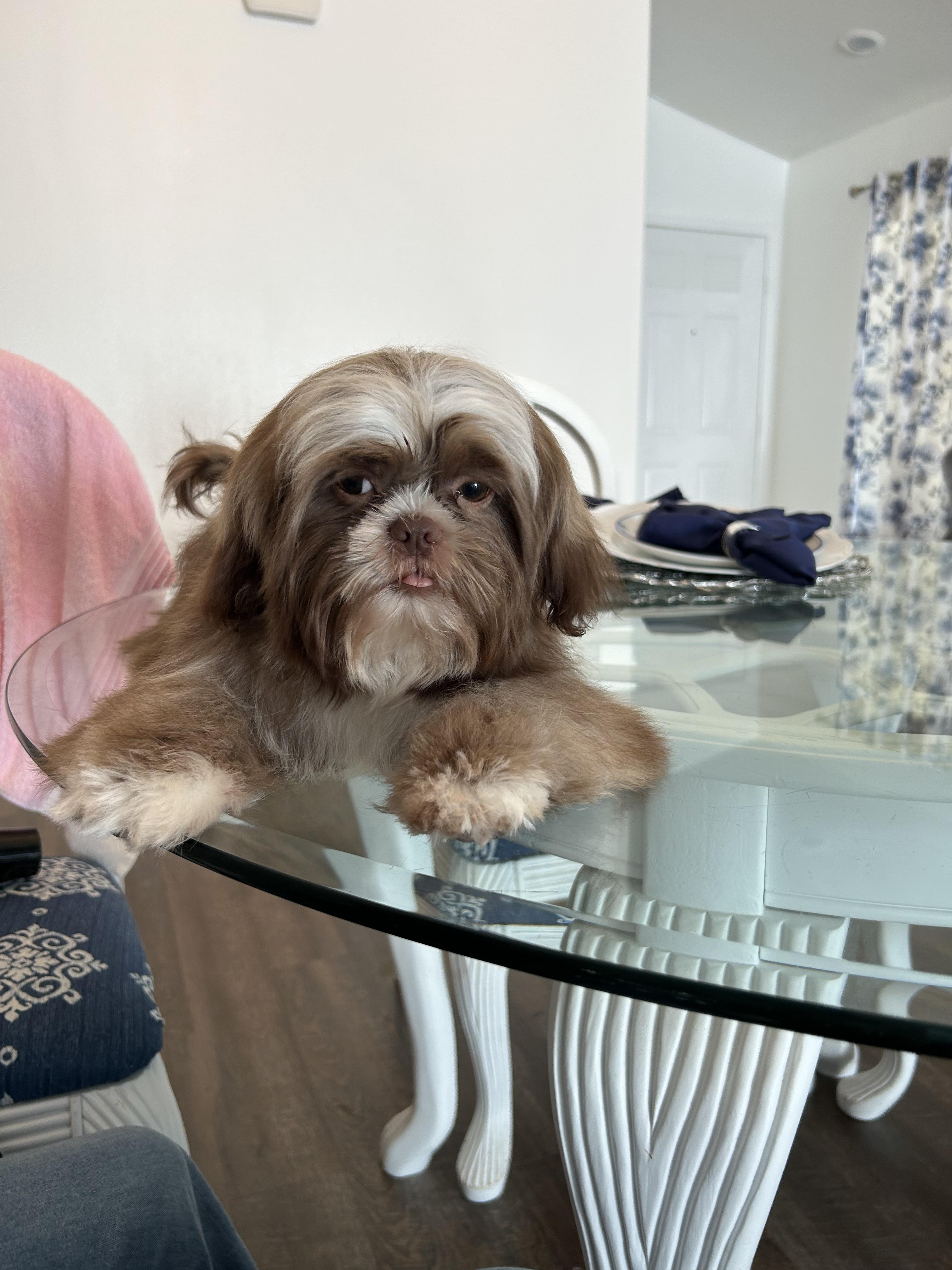 Mia is a female Shih Tzu. Carefully selected as a great representative of her breed, Melanie Girona, & Bebe decided to make her part of their program. Melanie Girona, & Bebe has passed Good Dog’s screening process, which involved a review of their breeding practices, environment, and the mental and physical health of their dogs.