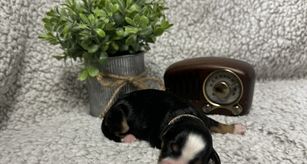 Our puppies are tri-color. Colors will vary depending on the parent dogs.