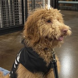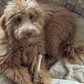 Dolly is a very mellow and affectionate soul. Dolly lives in a guardian home with 2 other Beck Goldendoodles.