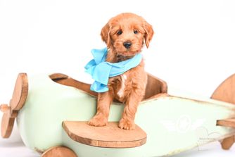 Rocky enjoys his morning walkies and playing a good game of fetch, any ball is a good choice! He is social & confident! DNA tested/cleared for Goldendoodle genetic diseases, good OFA prelim hips/elbows, OFA heart & patella certs, clear CERF eye exam.