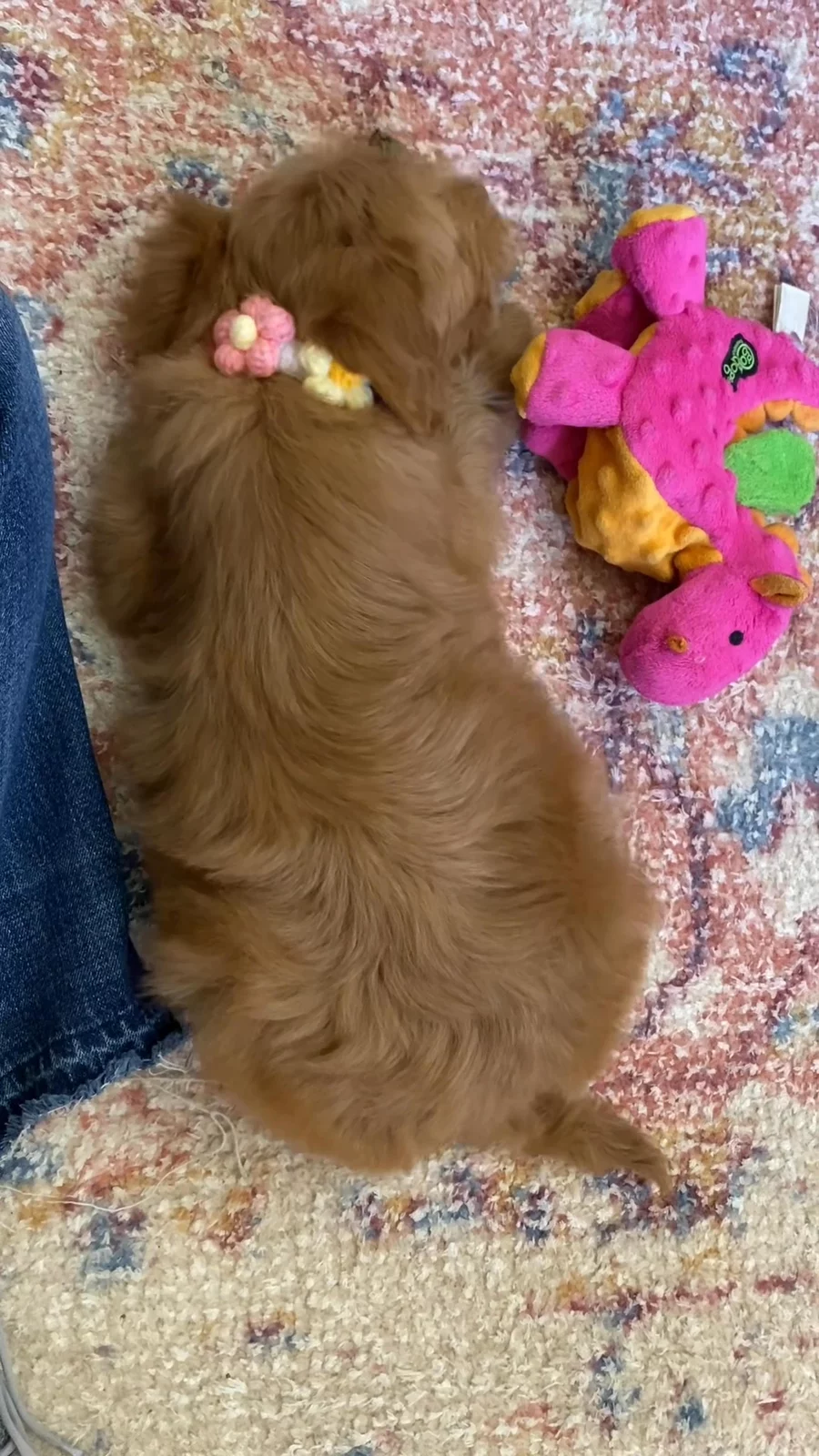 Lucy is the happiest tail wagging doodle, loves other dogs & enjoys human affection, such a social butterfly 🦋 Lucy has a thick plush deep straight red coat that is non shedding and so easy to maintain. DNA tested for Goldendoodle genetic diseases, OFA prelim hips/elbows, heart & patella certs, plus clear CERF eye exam.
