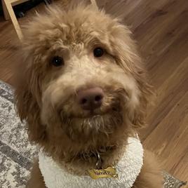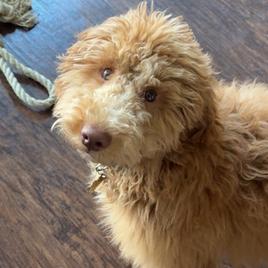 Dolly is a very mellow and affectionate soul. Dolly lives in a guardian home with 2 other Beck Goldendoodles.
