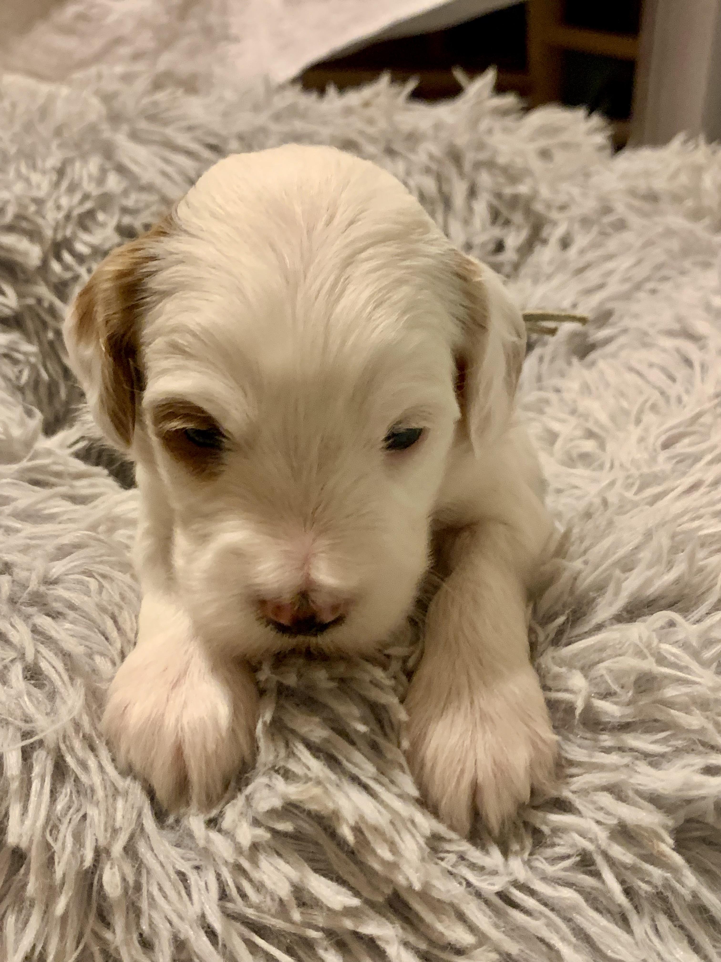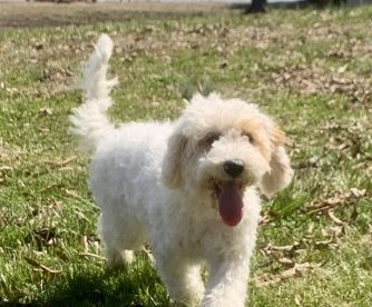 Prim is a female Australian Labradoodle. Carefully selected as a great representative of her breed, Karen decided to make her part of their program. Karen has passed Good Dog’s screening process, which involved a review of their breeding practices, environment, and the mental and physical health of their dogs.