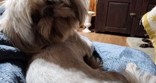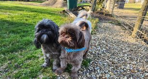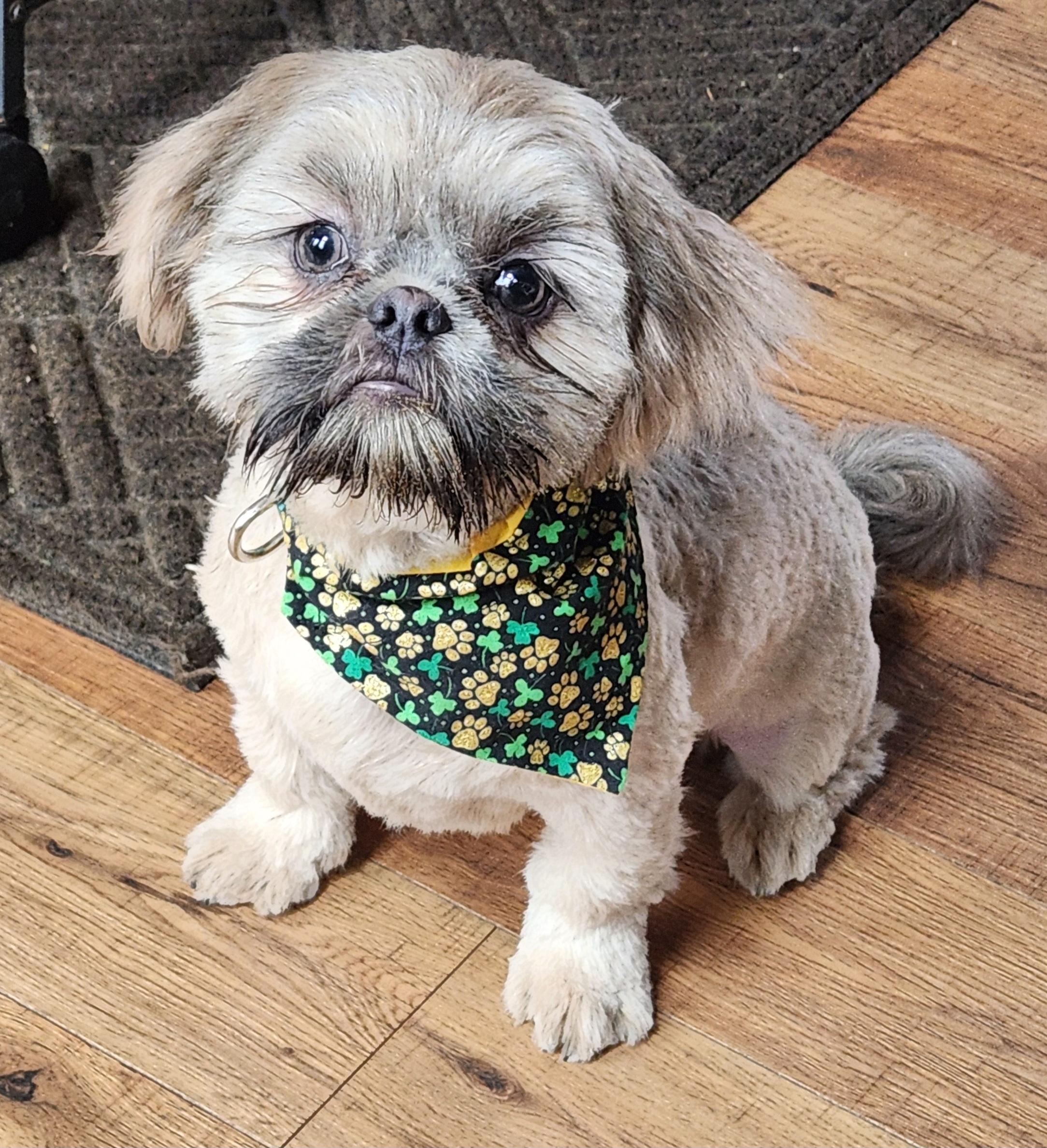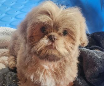 Donnie is a beautiful blue shih tzu. He is such a fun-loving boy. I swear he is always smiling! He has a beautiful thick coat and a beautiful little face. He has been cleared by embark with excellent health results.