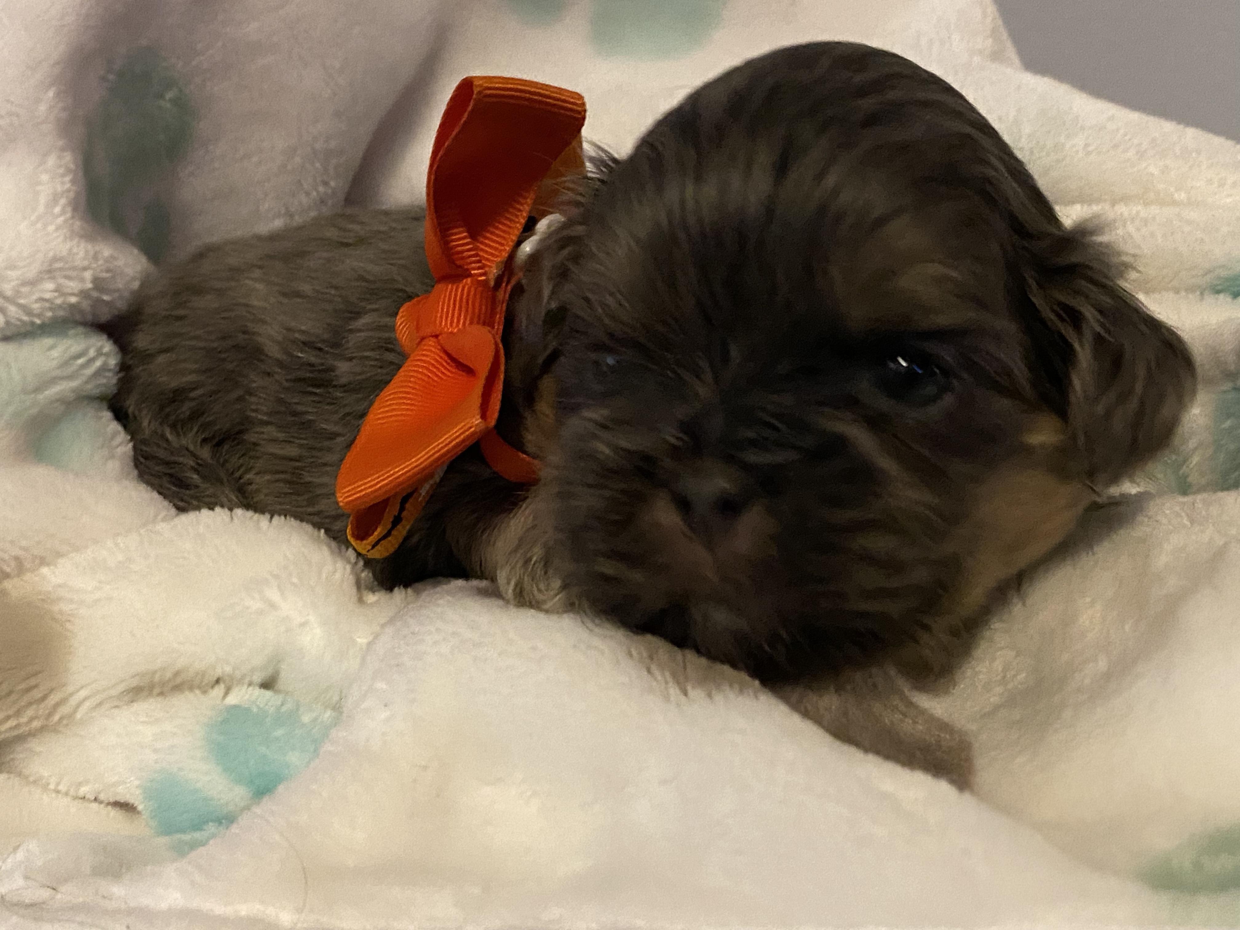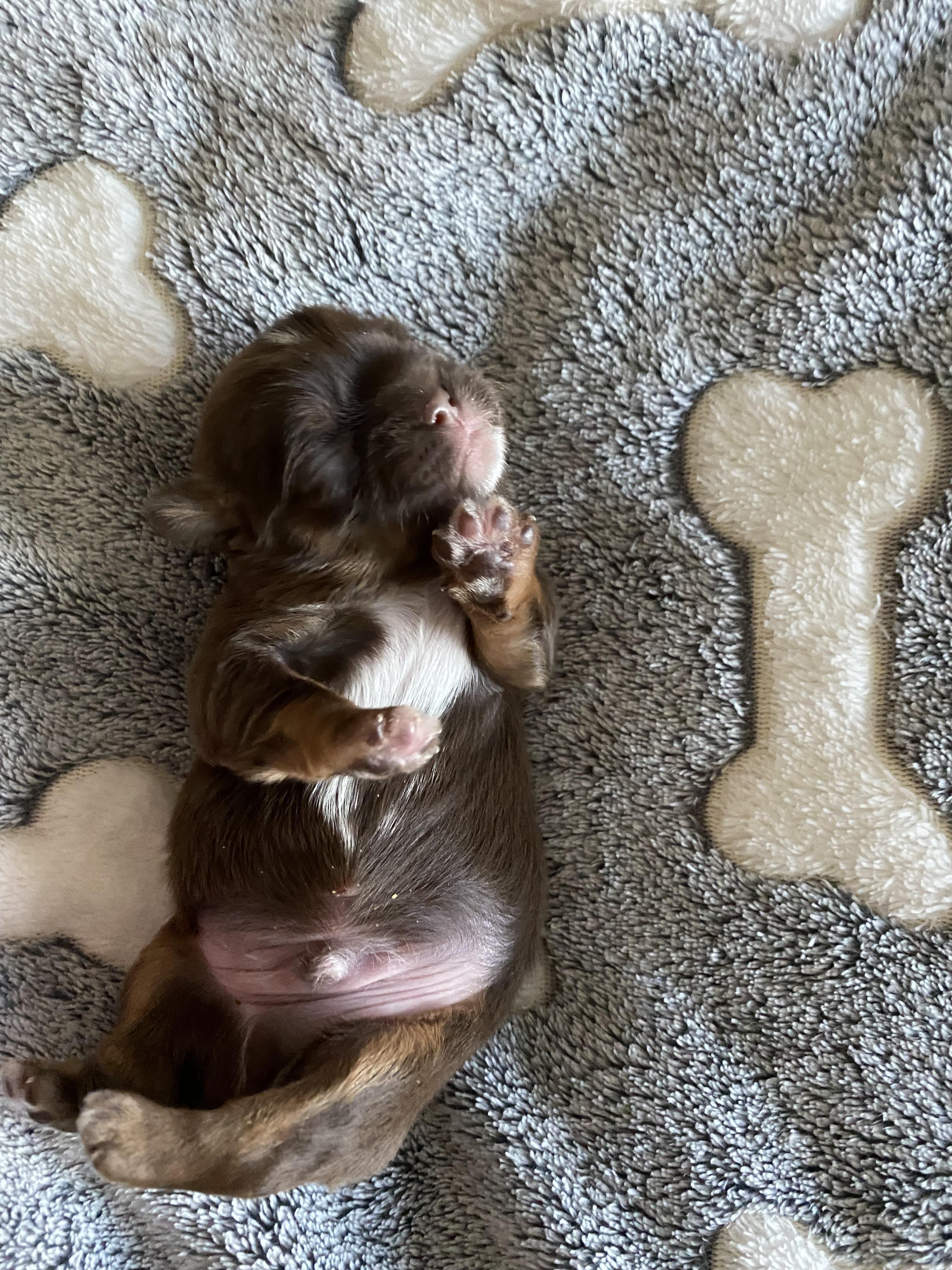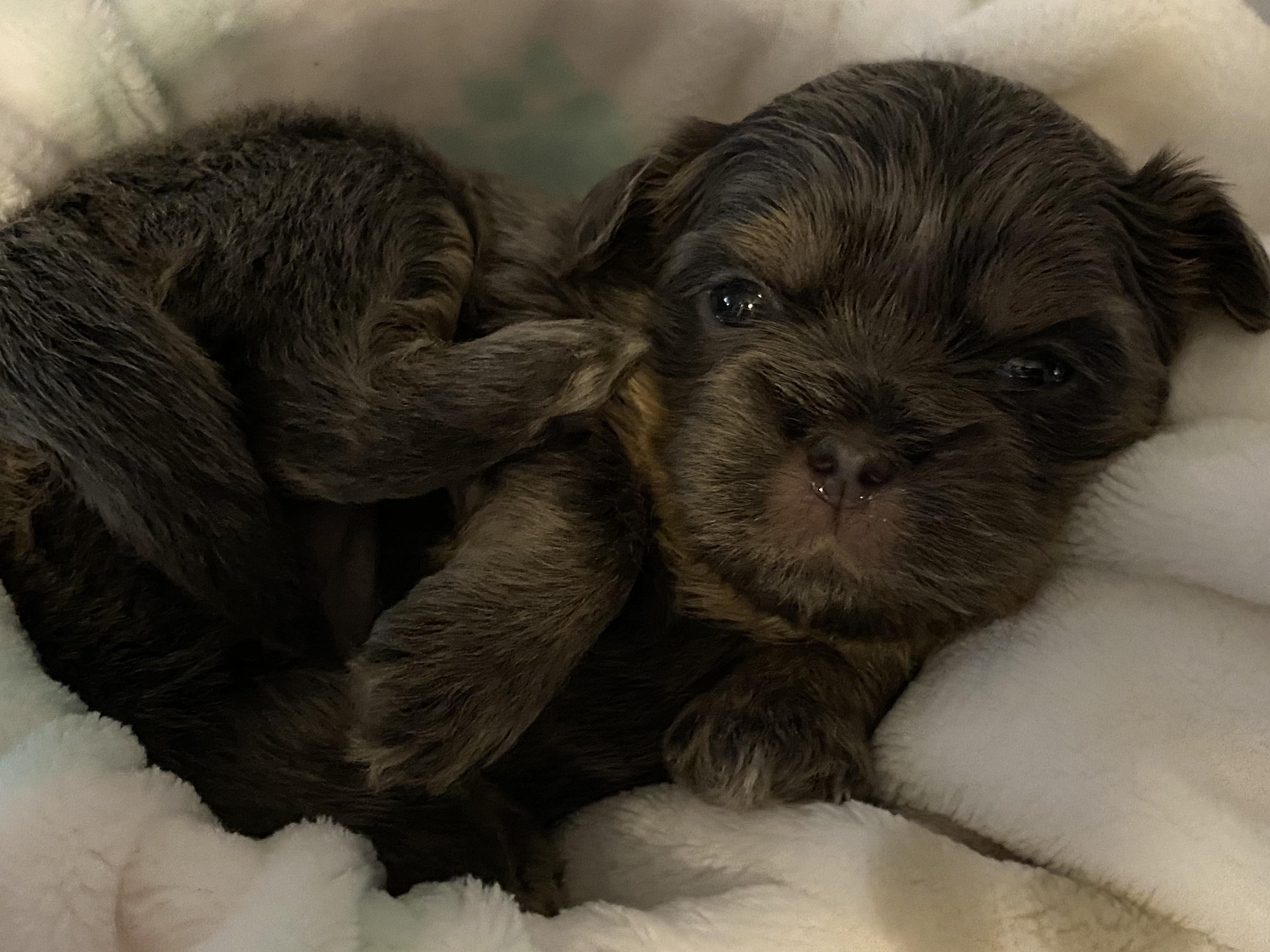 My babies are with me till they are 12 weeks old so they transition better to their new homes. They come with a copy of their own dna work ups if done, microchipped, typically 2 sets shots, 2 neopar shots, dewormed and treated with a coccidia preventative as well as a take home bag, food, thier vet clearance and akc paper work. Their bottoms are groomed to keep poop from sticking as well.