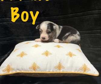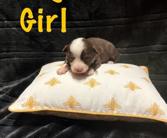 Our puppies include blue merle, black tri, red tri, and red merle. Colors will vary depending on the parent dogs.