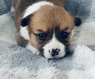 Our Pembroke Welsh Corgi puppies include red, sable, blue, white and black, and black and tan. American Corgi puppies include red merle and white, brindle merle and white, and blue merle and white. Colors will vary depending on the parent dogs.