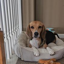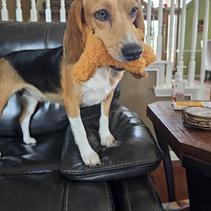 After losing our 9 year old German Shepherd in May our family decided we needed a new dog in our life. After researching our options, we chose to meet Penny and see if we were a good fit for each other. Penny was so friendly and healthy, we wanted her to be a part of our family. She made herself at home the moment she walked in the door of her new home. We will definitely use the beagle training that was provided, but she is a great companion who likes to watch football games and long walks.