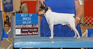 I studied animal husbandry in high school, have always wanted to show and breed dogs. My career(s) got in the way. After all my "pets" crossed over (ages 19, 17, 11, 11.5), my sister-in-law gifted me a Weimaraner female then a Boxer female, and I was in love instantly with both. I learned hard way that conformation judges do not like natural ears, therefore no champion points for my boxer girl. I purchased JJ, already CH, we finished his GCH together. Now I have downsized, for my health, to Toy Fox Terriers. A spunky, fun breed that is lovable but needs a solid training background to stay out of most trouble. Their favorite place in the world is right beside their people, so recall is easy.